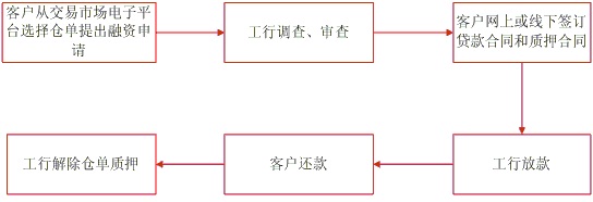 网上商品交易市场融资业务是指工行与网上商品交易市场合作,以交易商品现货等作保障,开发计算机辅助评价和利率定价模型,为市场交易商提供自助申贷、提款和还款等服务的短期融资业务。其中包括电子仓单买方融资和电子仓单卖方融资。